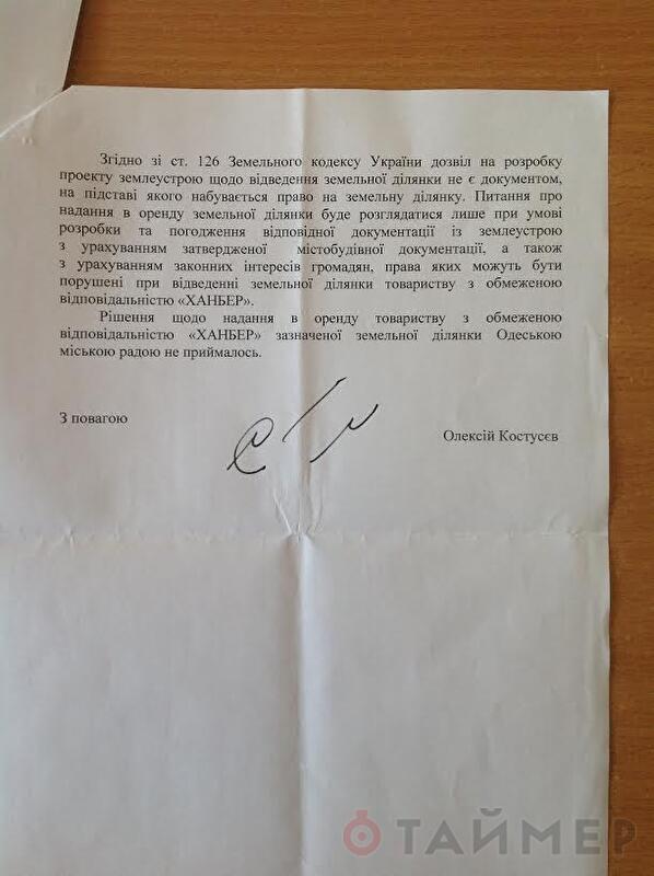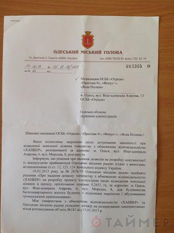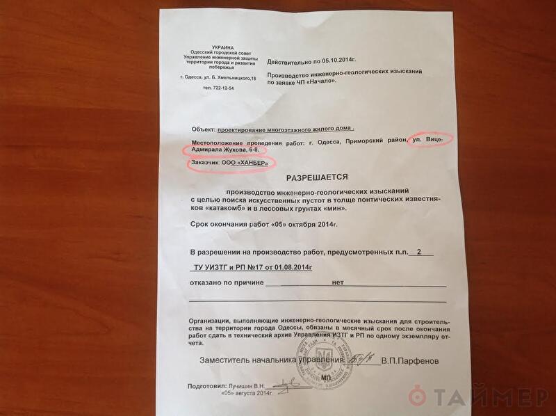 Это можно было бы считать нелепой случайностью, если бы не несколько «но». Во-первых, адреса Вице-адмирала Жукова, 68, на карте Одессы не существует, а во-вторых, по документам заказчиком «инженерно-геологических изысканий» является компания «Ханбер», уже давно пытающаяся получить участок на Вице-адмирала Азарова.