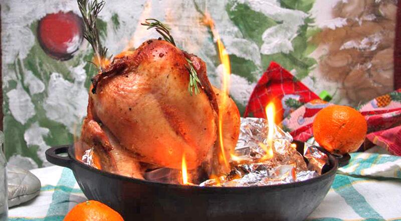 - Золотистую курицу можно подавать на стол! Перед подачей облей блюдо небольшим количеством пива и водкой, подожги. Выглядеть будет очень эффектно! Затушить фламбированную курицу легко: просто накрой ее кастрюлей, пламя погаснет.