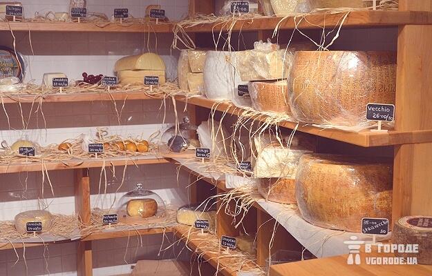 Также на нижнем ярусе расположена сырная комната. Здесь хранятся около 50 видов сыров: французские, швейцарские, итальянские и норвежские сорта. Любой вид сыра можно продегустировать. Цены умеренные: 22-46 грн за 50 грамм.