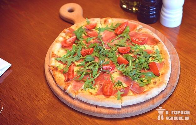 Пицца с прошутто, рукколой и черри. 440г/107 грн.