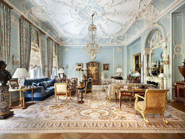 Интерьер первоначально оформлен французской компанией Jules Allard & Sons. Остались многие оригинальные детали, в частности, сохранился второй этаж с бальным залом в стиле Людовика XV и отделанная дубовыми панелями гостиная-столовая с окнами, выходящими на парк. Квартира была отреставрирована известным дизайнером Альберто Пинто, которому удалось сохранить первоначальную элегантность стиля.