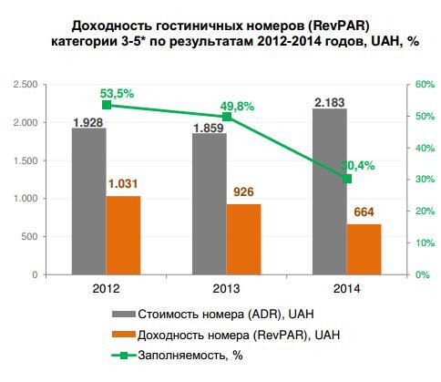 Основная тенденция прошлого года - снижение туристической и бизнес-активности - негативно сказалась на показателях всех без исключения операторов рынка. По данным Colliers, в 2014 году заполняемость отелей в среднем понизилась с 55 до 30% на конец года. "Вследствие нестабильной экономической и политической ситуации в Украине туристы из России, ранее составлявшие значительную часть турпотока, свели количество деловых и туристических поездок в нашу страну к минимуму. Также существенно сократилось число посетителей отелей из других стран и регионов Украины", - поясняет управляющий директор Colliers International Александр Носаченко. Пытаясь выжить, отельеры оптимизировали операционные затраты, а также объединялись в поисках выхода из кризиса.