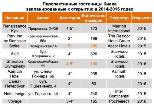 3. Из позитивных тенденций - рост конкуренции на украинском гостиничном рынке за счет растущей обеспеченности Киева гостиницами (соизмеримо с другими городами Европы). По данным Управления туризма, в Киеве доступно 12 122 гостиничных номера, 11,9% из которых составляют номера категории 5*, 17,9% - 4*, 41% 3-звездочных и 29,2% - 1-2*. В 2014 году открылся один отель категории 5* - Hilton Kiev (262 номера) и один 4* - отель "Мануфактура".
