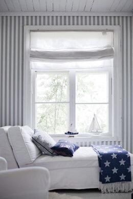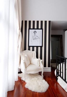 Такой рисунок не создает лишней напряженности и драматизма, располагает к отдыху, а потому подойдет даже для спальни или детской комнаты. Английское кантри и американское контемпорари одинаково комфортно будут чувствовать себя в присутствии обоев в бледную полоску. Сочетание белого и серого довольно гостеприимное: вы можете дополнить его выразительными деталями, пятнами яркого цвета.