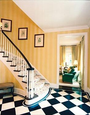 В некоторых случаях очень актуальны обои с полосами темных цветов, например, для отделки холла в классическом английском стиле или кабинета, где хозяину хочется погружаться в раздумья в окружении книг и приглушенного света.
