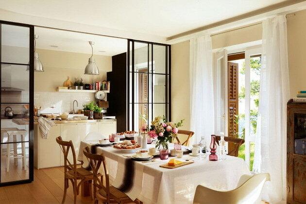 Проще всего обеденную зону сделать в отдельной комнате-столовой. Это реально в многокомнатных квартире или доме. Если вы строите дом сами, стоит подумать о столовой заранее.
