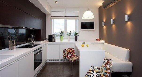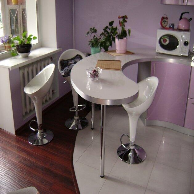 - стол можно заменить барной стойкой с высокими стульями. что значительно сэкономит пространство;