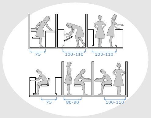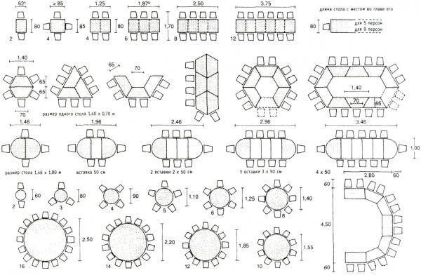 Помимо эстетичности и удобства на кухне и в столовой должно быть безопасно, для этого при расстановке мебели необходимо воспользоваться принипами эргономики. Так, одному человеку для комфорта за столом понадобится не менее 0,7 метра. Расстояние от стен не должно быть меньше полуметра. Удобная высота – 0,8 метра.