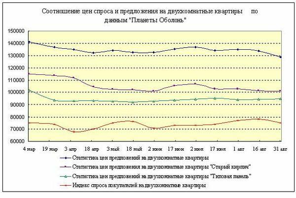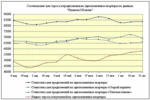 Количество предложений снизилось на 6% (01.08.09 в актуальной базе «Планеты Оболонь» было 3985 объектов на продажу, а 01.09.09 - 3741).