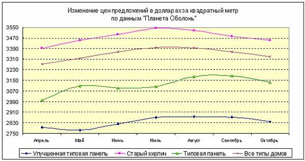 По сравнению с сентябрем, средние цены продажи снизились с 3195 до 2859 долларов за квадратный метр (или на 10,5%). Разница между ценой компьютерной оценки квартир (конкретного сегмента рынка) и реальной ценой продажи за месяц увеличилась с 5,5% до 9,8%. Средняя величина торга выросла с 1,9% до 4,5%.