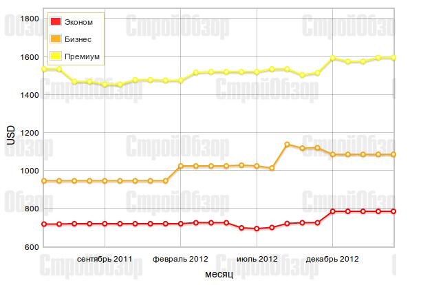 Эконом-класс 785 долл. за кв.м. (без изменений);