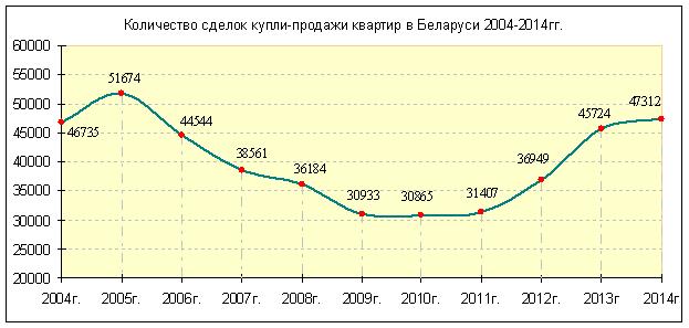 В Беларуси за 2014-й год заключено 47 312 сделок купли-продажи квартир. Это на 4% больше, чем в 2013 году. Самое большое количество сделок купли-продажи было в октябре – 5 542.