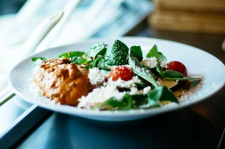 Принцип прост: вы выбираете любые пять ингредиентов и соус для салата на основе пасты или салатных листьев за фиксированную цену (79 гривен) или же любое количество компонентов по 10 гривен за один. Песто, оливковое масло и семечки и вода с мятой и лимоном — в любом количестве для посетителей бесплатно.