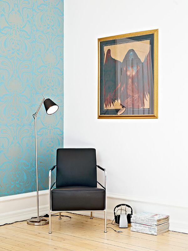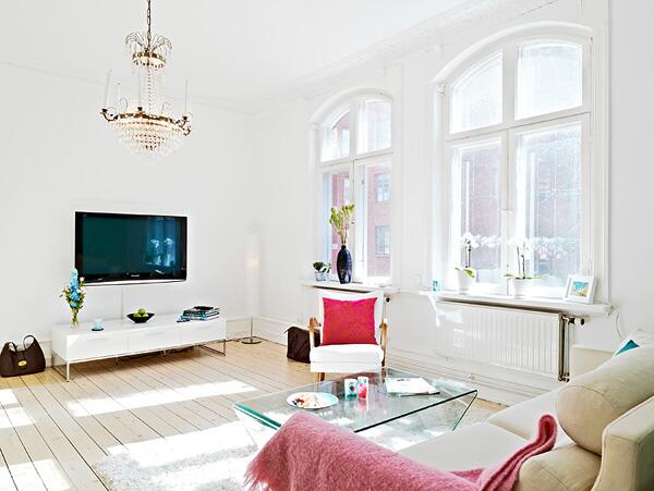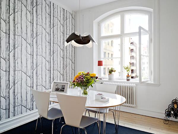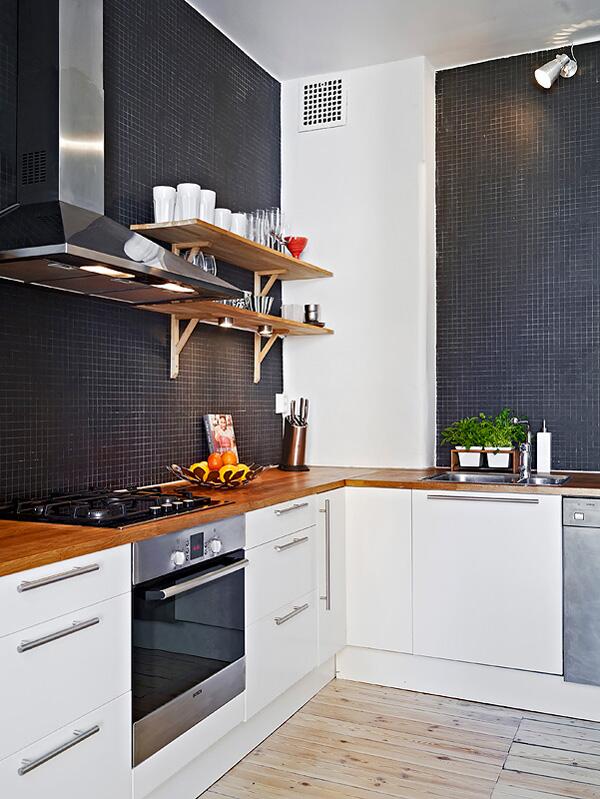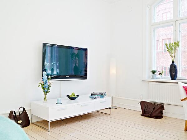 Несмотря на небольшую площадь в 51 кв. метр помещение выглядит вполне просторным и оставляет некие теплые чувства. Так, благодаря широким окнам большое количество света попадает в комнату, а белые и голубые стены зрительно увеличивают пространство и внушают чувство спокойствия. В гостиной достаточно места для размещения кровати, дивана, полки под телевизор, журнального столика и даже своеобразной мини-библиотеки с креслом для комфортного чтения любимых книг. В квартире также есть просторная гардеробная, которая скрывается за роскошными стеклянными дверьми. Полностью оборудованная кухня, кажется, принадлежит другой квартире, в ней создан свой собственный микроклимат. Вполне доступный вариант оформления квартиры, без особых изысков, но со вкусом, согласитесь?