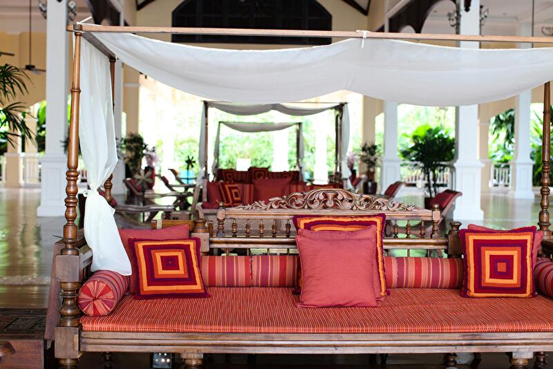 Лаундж-зона занимает чуть ли не центральное место в восточном интерьере. Крупногабаритный диван, пуфы, удобные кресла, внушительный журнальный столик – непременные атрибуты гостиной в этом стиле.