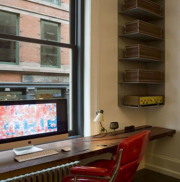 Оригинальный книжный шкаф можно установить прямо в углу. Но для экономии пространства оптимально подходят стеллажи, подвешенные над рабочим столом. Оптимизируйте пространство — получите современный стиль и даже ретро. Умело избавиться от беспорядка, оформить рабочее место и скрыть надоедливый угол — решение три в одном подойдет для винтажного интерьера. Отличный вариант для тех, кому спальня служит не только для сна.