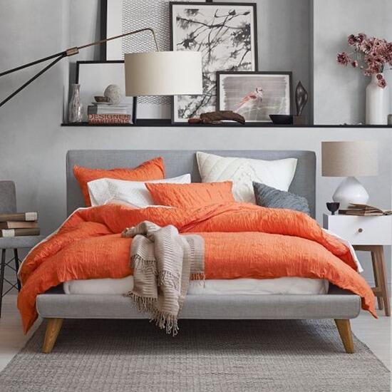 При этом, оранжевого должно быть не много. К примеру, если это спальня , то на кровать можно положить покрывало апельсинового оттенка, а рядом с кроватью постелить плетеный коврик с вплетенной нитью того же оттенка. В гостиной можно проделать то же самое с диванными подушками или даже шторами. Более приглушенные оттенки оранжевого в комнате также приветствуются, но уже в мелочах, тогда мягкость перехода от яркого к пастели будет еще элегантнее.