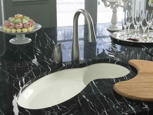 Раковины оригинальной формы больше подходят тем, кто ими почти не пользуется. Если вы предпочитаете посудомоечную машину, обратите внимание на неглубокие, изогнутые мойки или фигурные раковины.