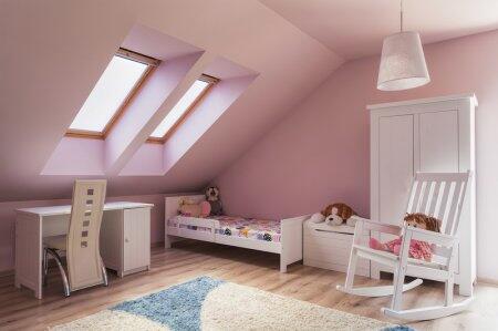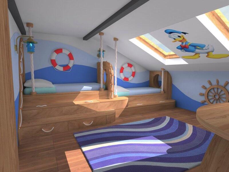 Детская комната на втором этаже дает возможность ребенку играть, заниматься своими делами и вовремя лечь спать даже когда дома гости.