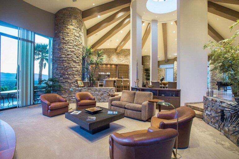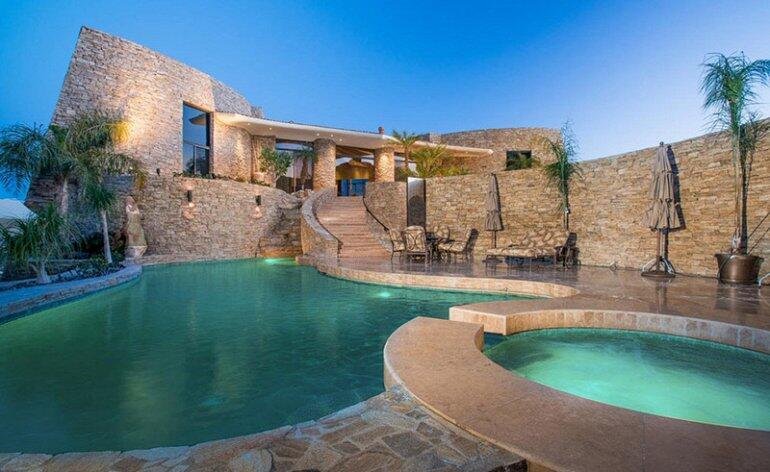 Этот необычный дом расположен на исторической и известной Саутридж-Драйв в Палм-Спрингс, рядом с жилищами знаменитостей. Взгроможденный на холме и открывающий невероятный вид La Piedra был полностью отремонтирован в 2005 году. Теперь он гарантирует полную безопасность и приватность своего владельца. На его строительство потребовалось 7 лет, и 700 тонн удивительного обработанного вручную Кварцевого камня из Айдахо. Это довело общую стоимость проекта до такой значительной суммы.![]()