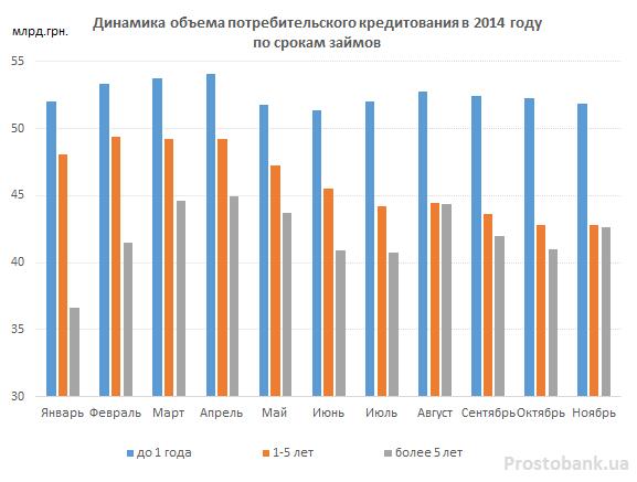 На самом же деле снижение было намного большим, чем показывает статистика. Дело в том, что более 40% потребительских займов выдано в иностранной валюте, и падение курса гривны автоматически увеличивает объем кредитного портфеля в национальной валюте. Если же посмотреть на статистику только по потребительским займам, выданным в гривне, то за 11 месяцев 2014 года они снизились на 9,5% - со 108,3 до 98 миллиардов гривен.