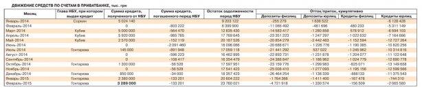 Примечательно, что с учетом всех оттоков, притоков и погашений и по состоянию на начало 2015 г. дисбаланс в 5 млрд грн между выданными средствами НБУ и направленными "Приватом" на погашение депозитов клиентовсохранялся.