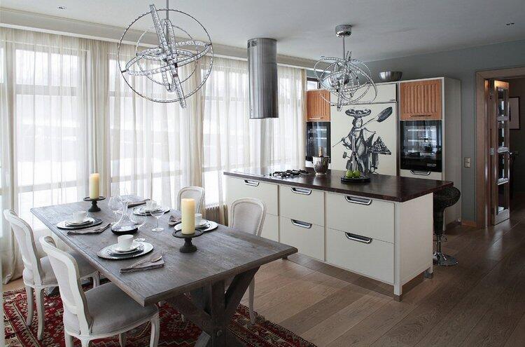 Кухня и каменная столешница — Meneghini; столовый гарнитур — Dialma Brown ; холодильник — Sub-Zero.