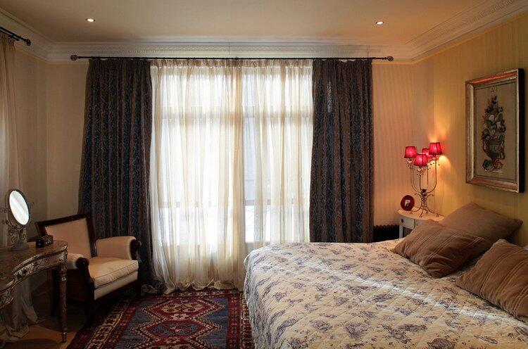 Почти всю мебель заказывали в Италии, однако кое-что приобрели в России: например, двуспальная кровать куплена в Ikea. Настольная лампа — Bada; ковер — Dialma Brown .