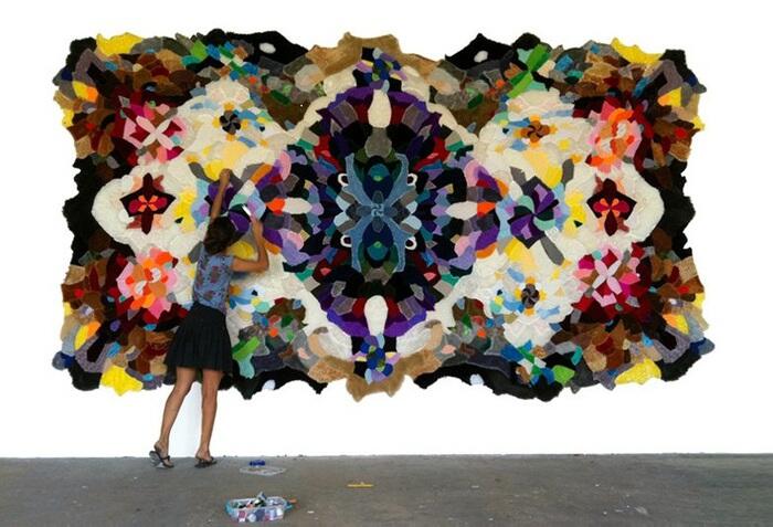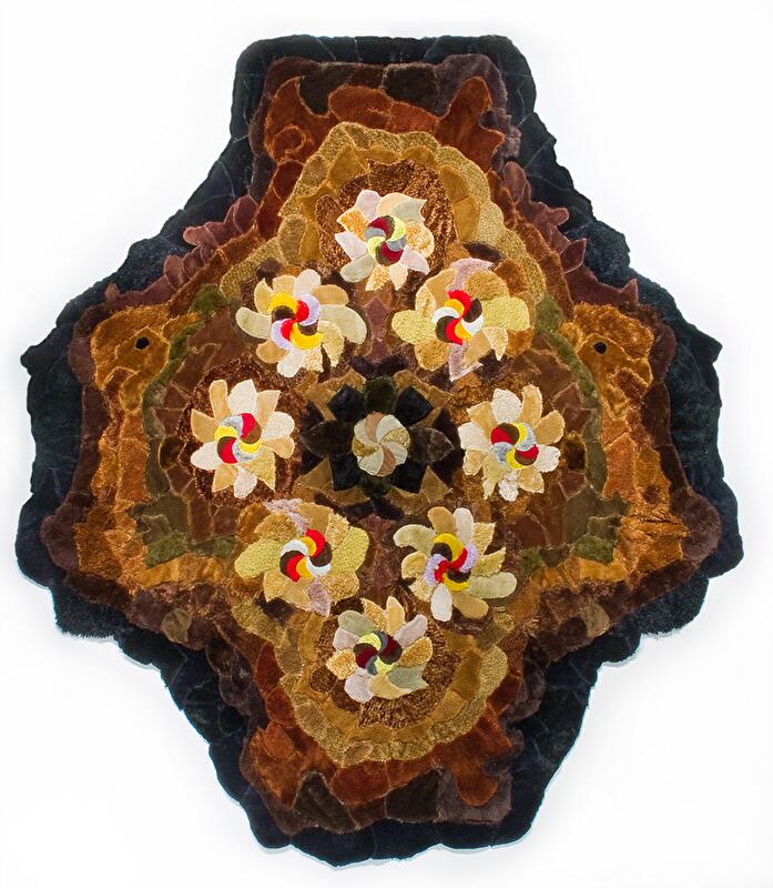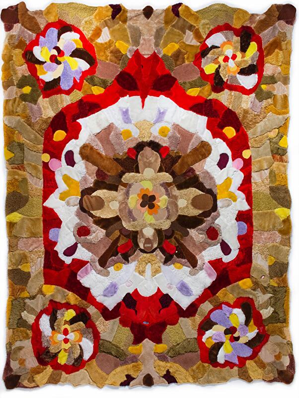 Дизайнер перекраивает меховые детали игрушечных медвежат и составляет из них причудливые узорчатые композиции примерно 2 м × 2,5 м. Все элементы сшиваются вручную, и в виде готового изделия получают свое поэтическое название: «Лепестки роз», «Павлин», «Галактика» и т.д.