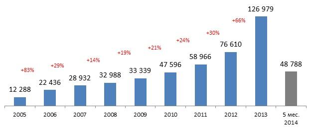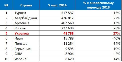 В целом, за последние 8 лет туристический поток из Украины в Грузию вырос более чем в 10 раз, а по итогам 2013 года увеличился на 64% в сравнении с 2012. Так, в 2013 страну посетило 126 797 граждан Украины, а за 5 месяцев 2014 года – уже 48 788, что на 27% больше по сравнению с аналогичным периодом 2013 года.