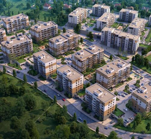 Проект жилого комплекса «Кришталеві джерела» , строящегося рядом с парком «Феофания» предполагает 4 дома и 25 коттеджей.