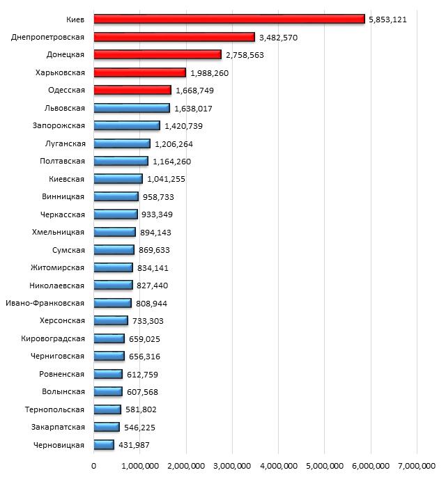 Также в топ-5 областей лидеров по количеству активных платежных карт закономерно вошли все четыре оставшихся области с центральными городами-миллионниками – Днепропетровская (3,483 млн.), Донецкая (2,759 млн.), Харьковская (1,988 млн.) и Одесская (1,669 млн.).
