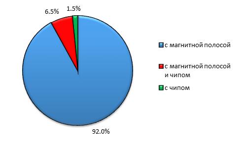 С начала года доля карт с магнитной полосой и чипом выросла на 2,2 процентных пункта.