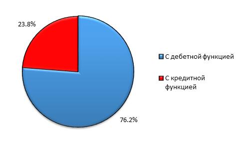 Структура платежных карт по количеству дебетных и кредитных с начала года существенно не изменилась. На 1 октября 2014 года количество кредитных карт составило 23,8% или почти 8 миллионов единиц, а дебетных 76,2% или свыше 25 миллионов единиц (на 1 января проценты были почти теми же – 24,7% на 75,3%).