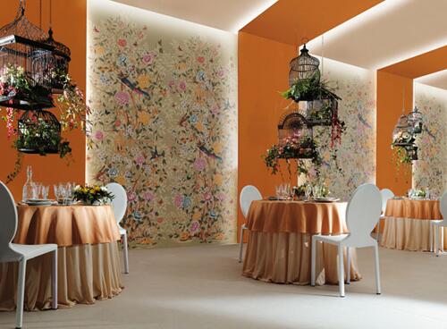 Линия Florilège – яркие и элегантные пастельные цвета . На плитке изображены цветы, павлин, деревья, птицы – все, что изображалось на китайских обоях 18 века. Рисунки можно сочетать в различных комбинациях, в результате чего можно получить много прекрасных композиций.