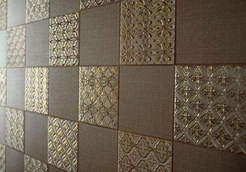 Плитка представлена в трех вариантах дизайна, прекраснейшим образом имитирующих расцветки обоев. Плитку очень сложно отличить обоев еще и за счет фактурной текстуры, которая издалека напоминает мягкую шелковистую ткань.