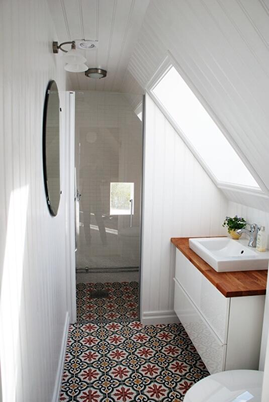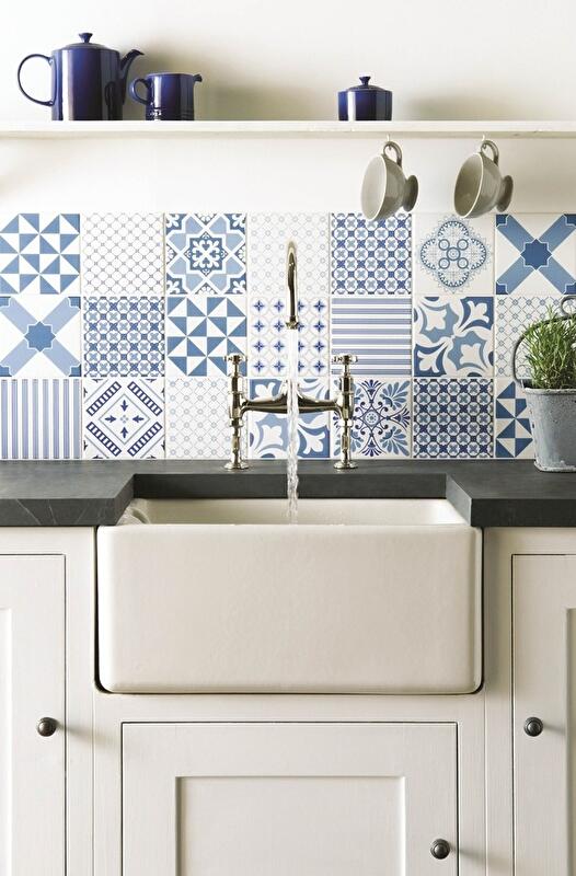 Кстати, пэчворк – это не всегда множество оттенков: если вам ближе лаконичные цветовые решения, выбирайте плитку с аккуратным узором, окрашенную в два тона.
