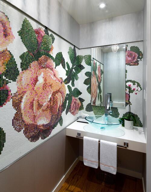 Природные мотивы в интерьере уместны не только в загородных домах: отделка в спокойных голубых или зеленых тонах освежит интерьер квартиры в мегаполисе, а цветочный узор привнесет ноту деревенского уюта. Современные технологии позволяют выпускать плитку округлых форм и нежных природных расцветок или создать на стене душевой кабины иллюзию шумного водопада.