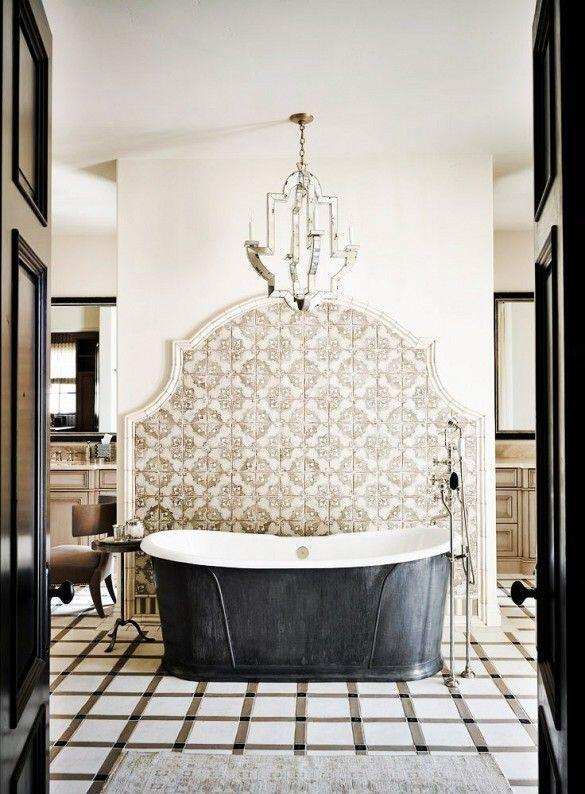 Со временем отделка в стиле ар-деко стала бюджетнее: современная плитка отличается изящными узорами и глубокими цветовыми сочетаниями, но, в отличие от своего прототипа, намного доступнее по цене. Крупную плитку с таким узором можно положить на пол и стены, мелкой – украсить отдельные элементы интерьера.