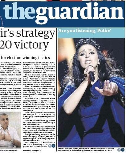 На победу Джамалы в песенном конкурсе отреагировали западные СМИ, политики и артисты. Так, влиятельная американская The Washington Post отметила, что выступление украинки явно выделялось на фоне остальных песен о любви. Известное американское издание The New York Times отметило, что победа песни "1944" может стать одной из самых противоречивых в истории Евровидения: газета подчеркнула, что Джамала вплотную подошла к нарушению правила "музыка вне политики". Британская газета The Guardian также отметила политическую окраску песни, при этом авторы статьи подчеркивают, что Джамала выступила "незабываемо". Также в газете говорится, что Евровидение этого года было одним из самых заполитизированных за историю существования конкурса. При этом еще до финала газета вышла с Джамалой на обложке и заголовком: "Ты слушаешь, Путин?".