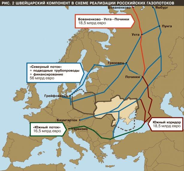 Для того чтобы указанная сумма растеклась по рекам и ручьям и попала на нужные счета нужных людей в разных странах, и необходим швейцарский компонент в схеме реализации "Южного потока" ( см. рис. 2).