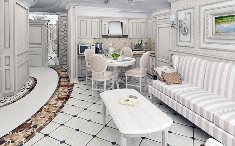 Ремонт сделан в классическом стиле, квартира оформлена в светлых тонах. Здесь есть две спальни, три санузла, гардеробная, гостиная-столовая, зона кабинета. Мебель и встроенная техника – от европейских производителей. В ремонте и оформлении были использованы только качественные и экологичные материалы. Стоимость аренды квартиры – $15000.