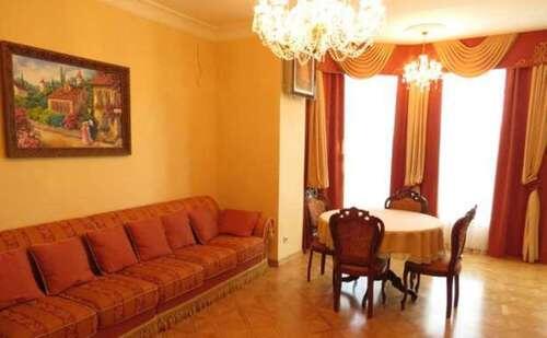 Четырехкомнатная квартира на Владимирской, 51, прямо возле Национальной Оперы, обойдется в 150 долларов за сутки. Здесь могут разместиться до 8 человек. Качественный дорогой ремонт, удобная мебель и бытовая техника есть. Кроме того, над входной бронедверью установлена камера для обеспечения безопасности. В стоимость входят и услуги горничной.
