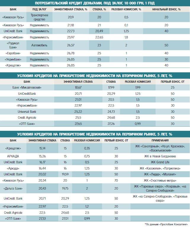 ПОЧТИ НЕ КРЕДИТУЮТ. Впрочем, об ипотечном кредитовании в Украине и до нынешнего кризиса говорили в духе "пациент скорее мертв, чем жив". Тем более — на фоне успехов во времена строительного бума, предшествовавшего обвалу 2008 года, когда более половины квартир в новостройках приобретали за кредитные деньги. В текущем же году, по словам директора консалтинговой компании City Development Solution Ярославы Чапко, на банковское кредитование приходится не более 2% сделок на первичном рынке недвижимости Киева. Не исключено, что эта доля и дальше будет снижаться, тем более что многие застройщики сейчас предлагают квартиры в рассрочку, в том числе беспроцентную. При том, что средние ставки на займы для приобретения квартиры в новостройке с начала года в зависимости от срока подросли на 1,3—3 п.п. и сейчас уверенно перевалили за 20%, независимо от срока кредитования.