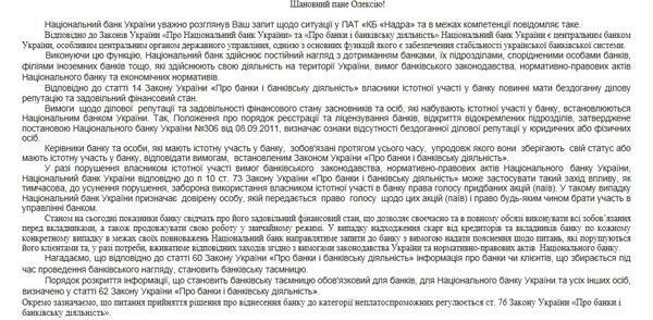 Согласно тексту постановления НБУ №306 (п 1.17), на которое ссылается регулятор, признаком отсутствия безупречной деловой репутации у физлица, в том числе акционера банка, может быть все, что угодно. Начиная от непогашенной судимости, и заканчивая несвоевременным погашением банковских кредитов или "ненадлежащим исполнением обязательств как плательщика налогов и сборов".
