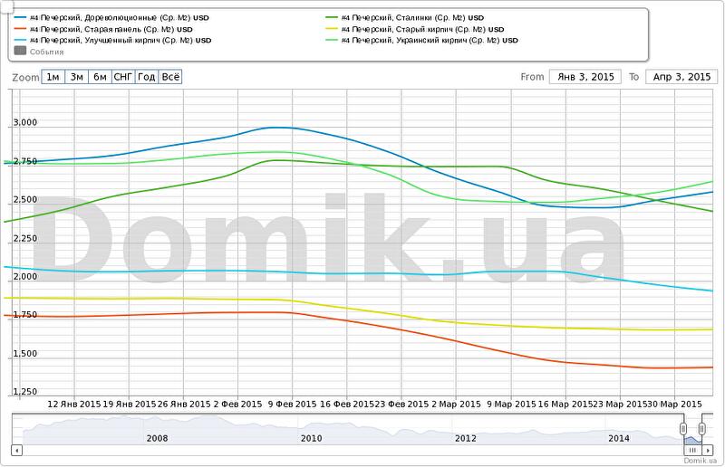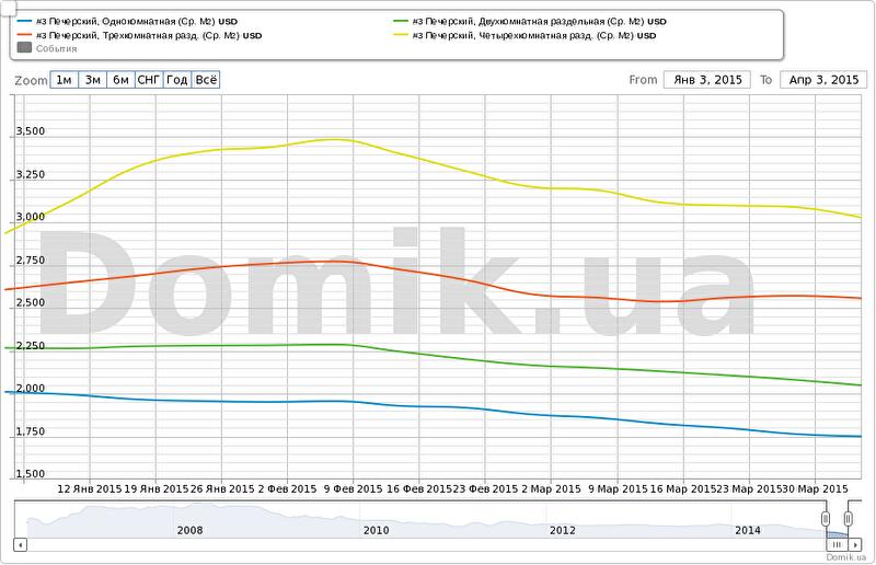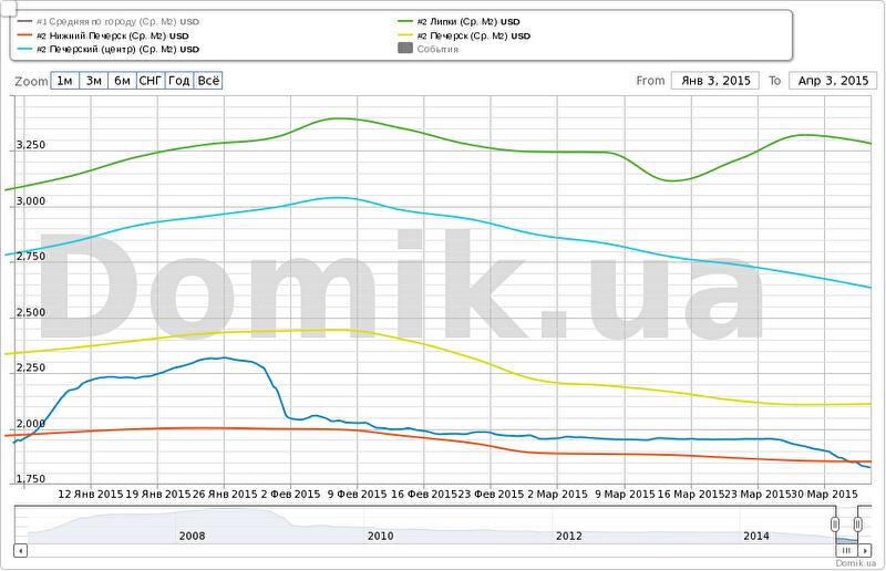 Как уже отмечали аналитики портала Domik.ua, меньше всего снижение цен на квартиры в первом квартале 2015 года коснулось Печерского района — если в целом по городу цена снизилась почти на 8%, то в Печерском районе — на 4%.