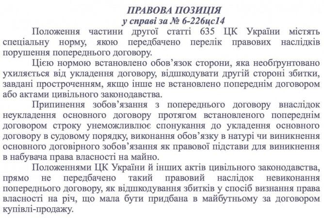 Согласно этой правовой позиции, доблестные украинские застройщики не обязаны, построив дом на средства горе-«инвесторов», передавать этим горе-«инвесторам» готовые квартиры, если с ними подписан не основной, а только предварительный договор.