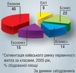 Вместе с тем элитного жилья в столице строится не так много. По оценкам застройщиков, в 2006 году суммарная площадь новостроек класса «премиум» или «де-люкс» не превысит 9-15% общего количества сданного жилья. Генеральный директор инвестиционно-девелоперской компании Global Solutions Сергей Тумасов считает, что причина в ограниченном спросе: «Элитные квартиры ориентированы на очень богатых людей. А их не так много в Украине. Этим объясняется небольшая доля дорогого жилья в общих объемах строительства».