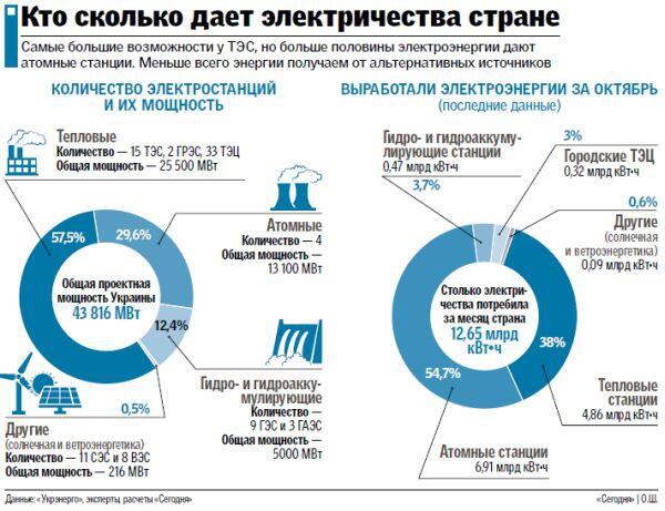 Причина снижения выработки электроэнергии — банальная нехватка угля: станции для экономии уменьшают его расход и снижают мощность генераторов, производящих электроэнергию. а также выход в аварийный ремонт энергоблока №3 Запорожской АЭС (мощность 1000 МВт), который обещают запустить к концу недели. В итоге "тока" начинает не хватать, особенно зимой — когда потребление возрастает в разы.