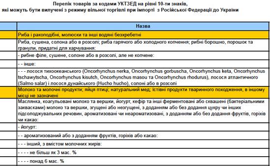 На следующий день вступили в силу ограничения на импорт в Россию плодоовощных и рыбных консервов компании "Верес", "Одесского консервного завода", "Нежинского консервного завода", "Винницкого завода упаковочных изделий "Винтар", компаний "Альфа-етекс" и "Южный РКК".